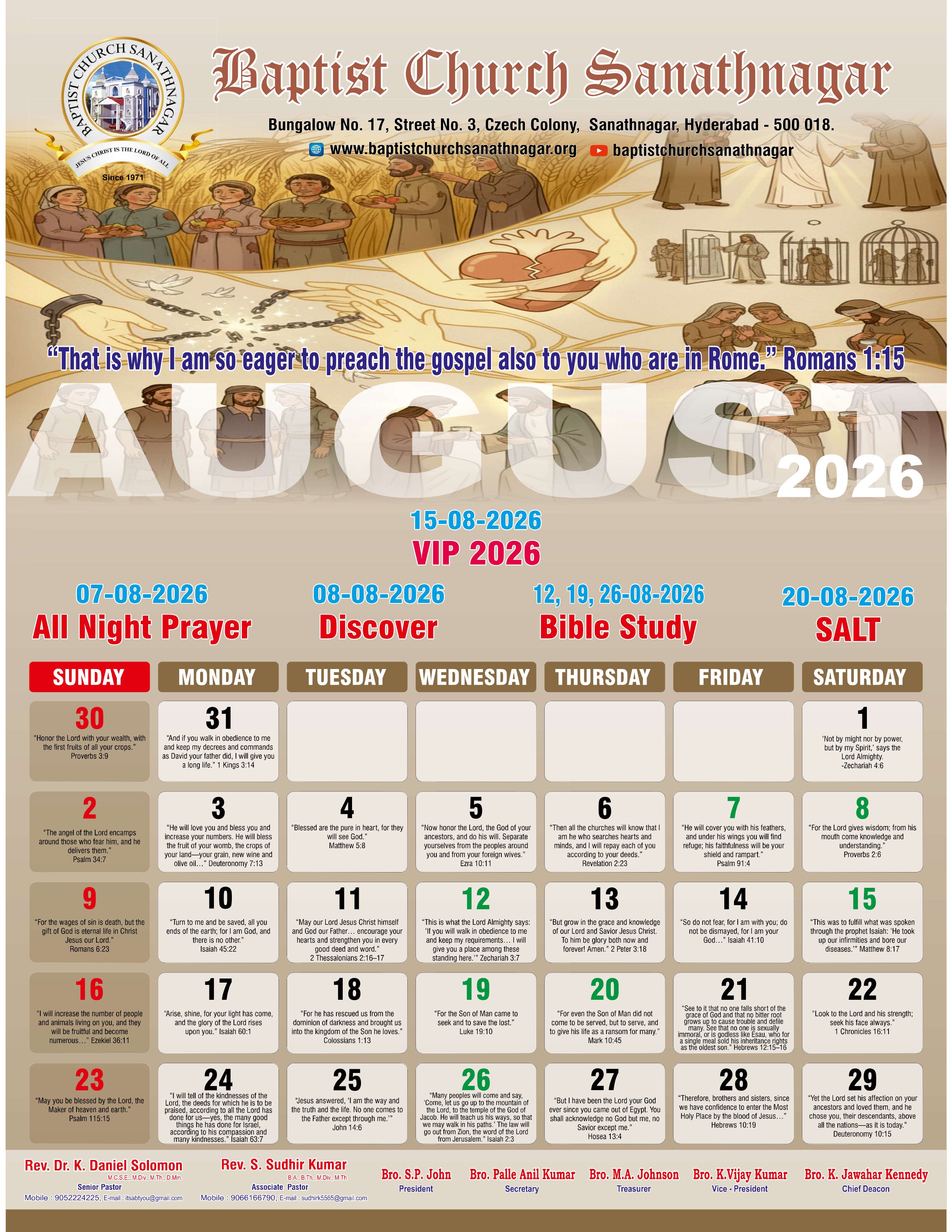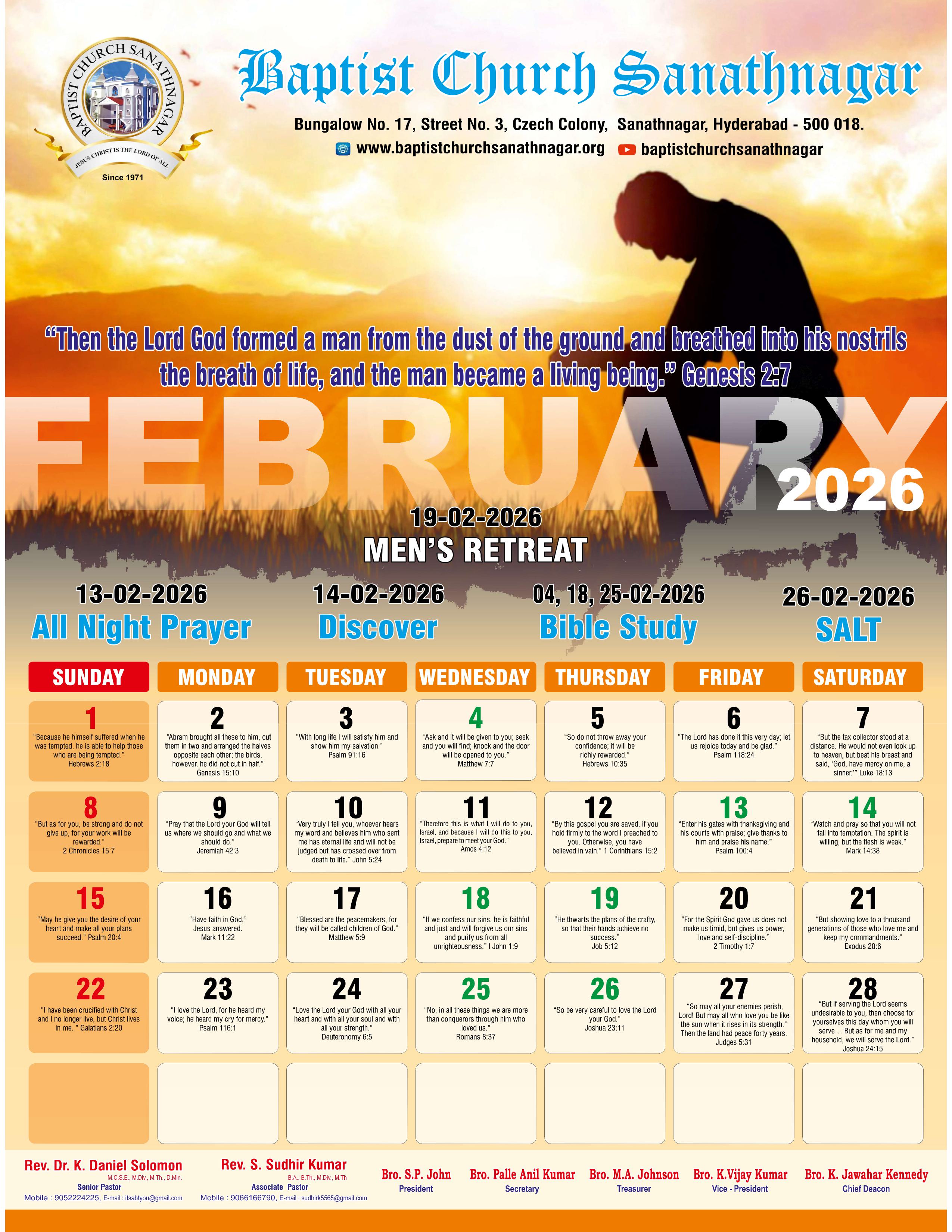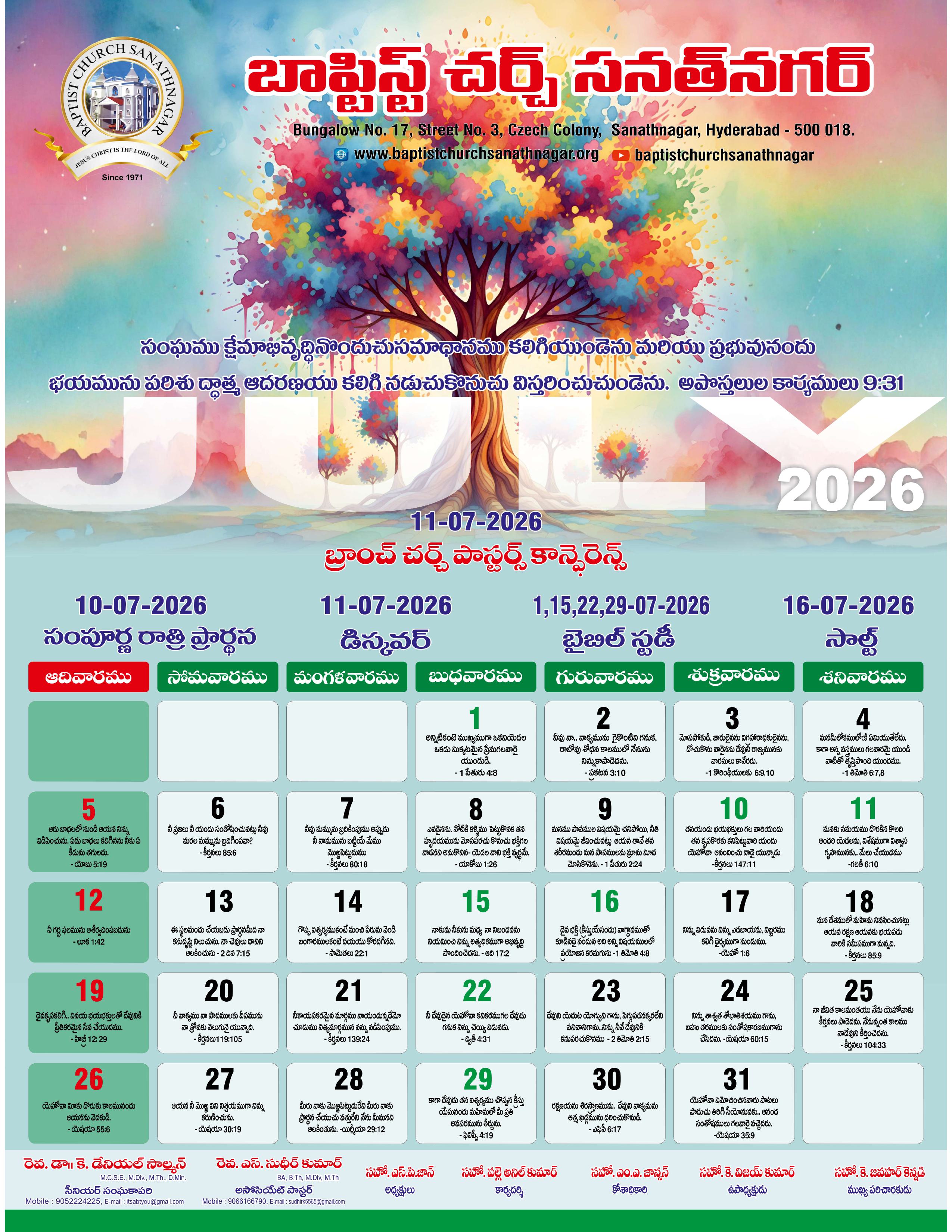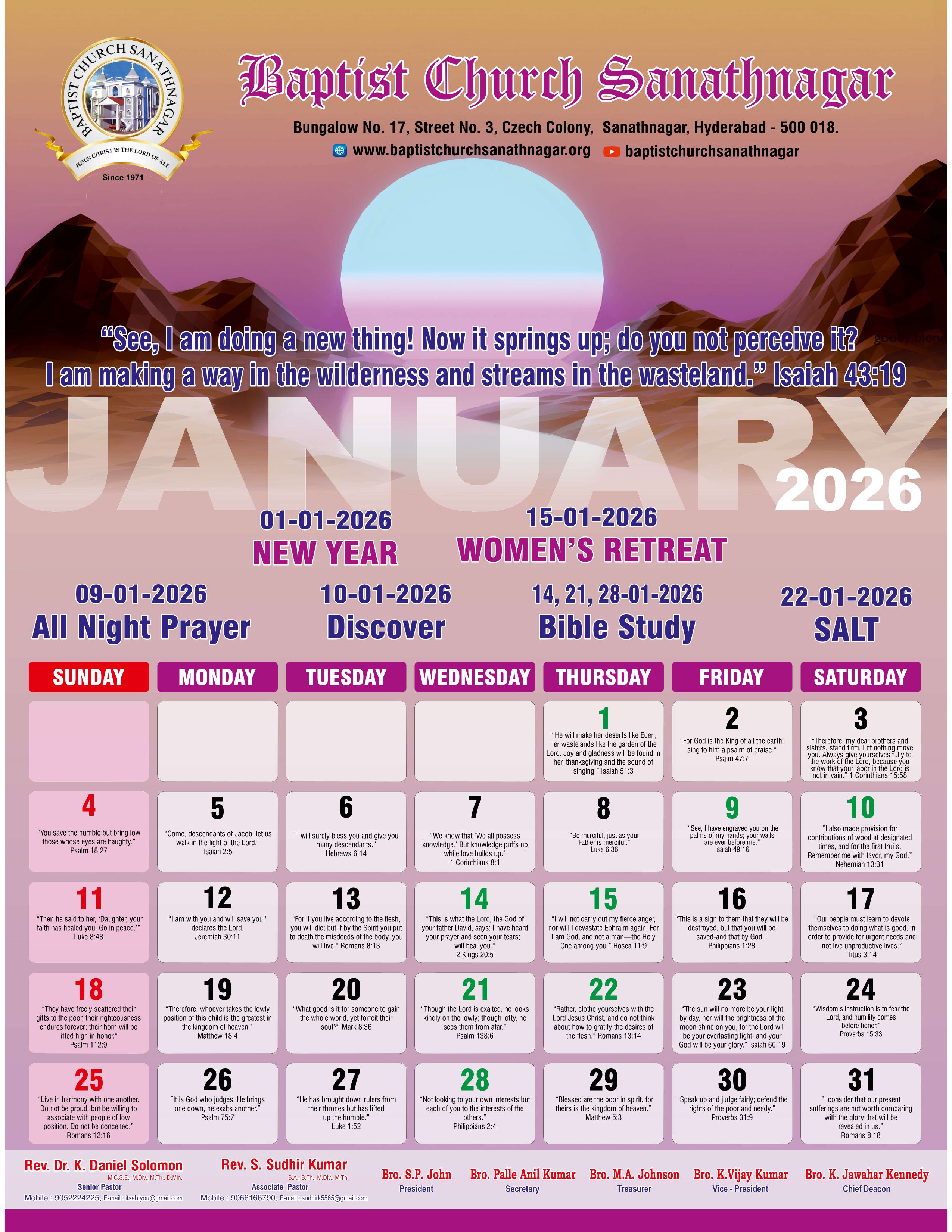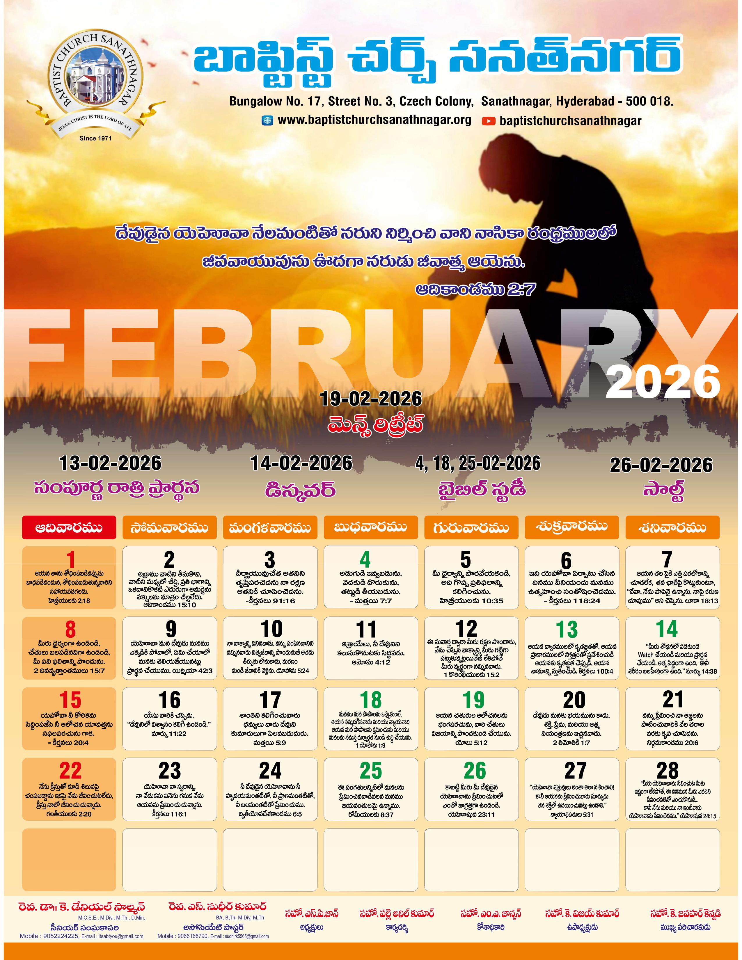 Monthly Bulletin Telugu Calendar 2026 English Calendar 2026 Click Here to Download Previous Month Bulletin Sermons Bible Study SALT (Study and Learn Together) Click Here more Videos